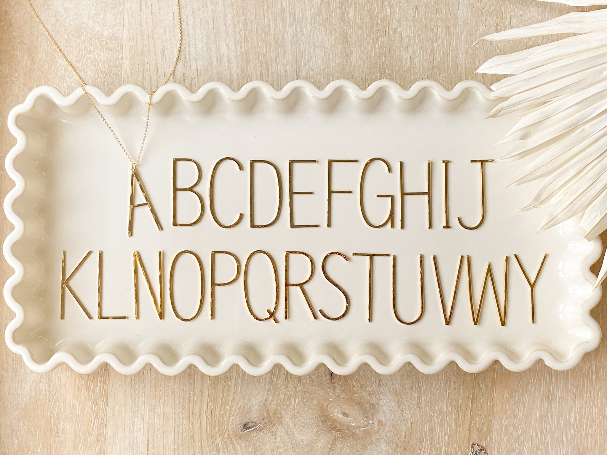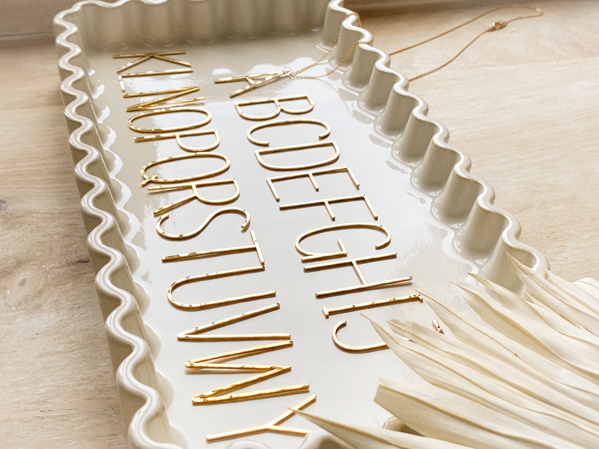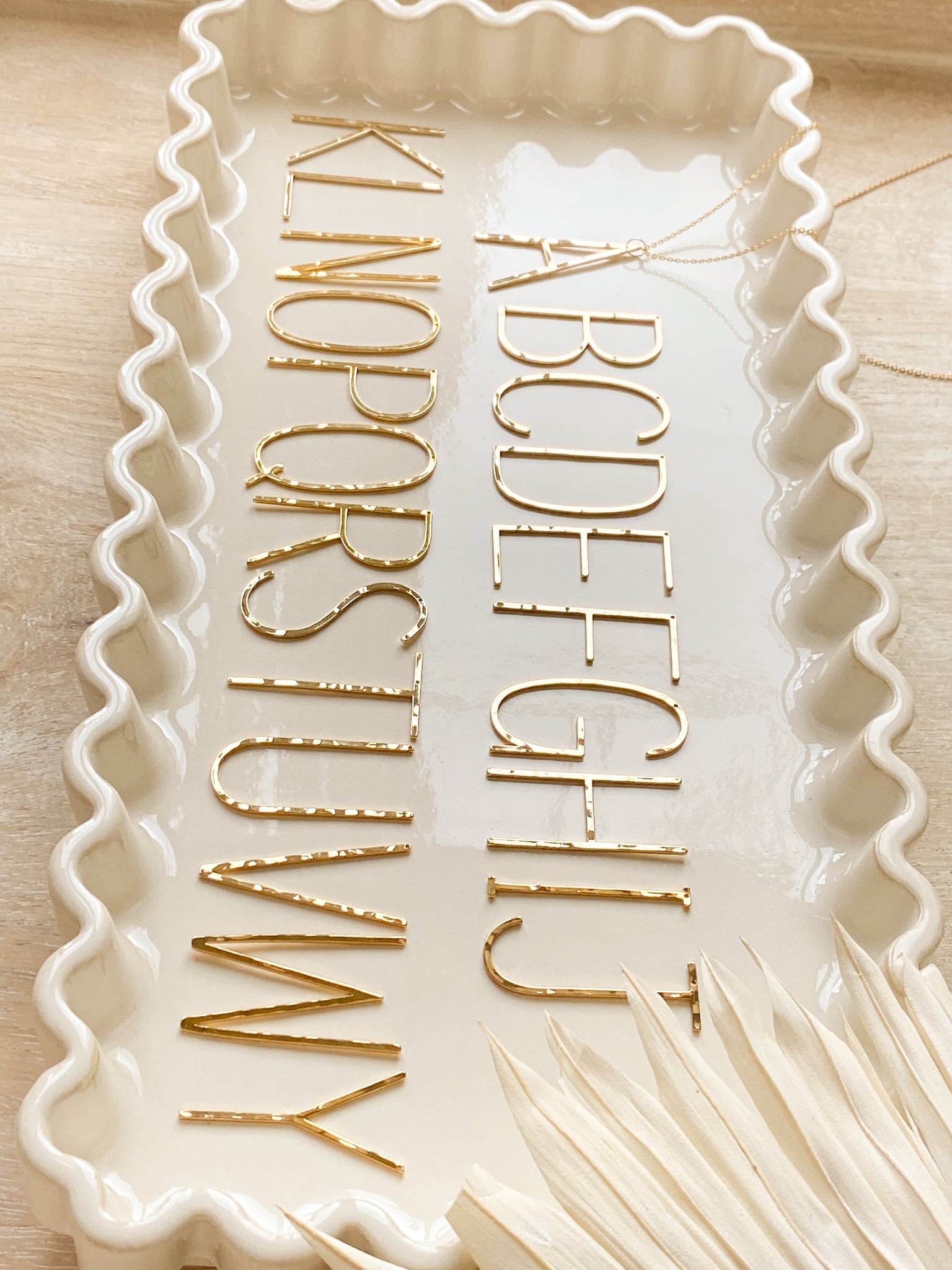 Make a statement with an initial "Capital Necklace" that has a 1.5" hammered letter. Each chain and letter are 14K Gold plated and nickel free. Chain is 18" in length. Custom lengths available upon inquiry.