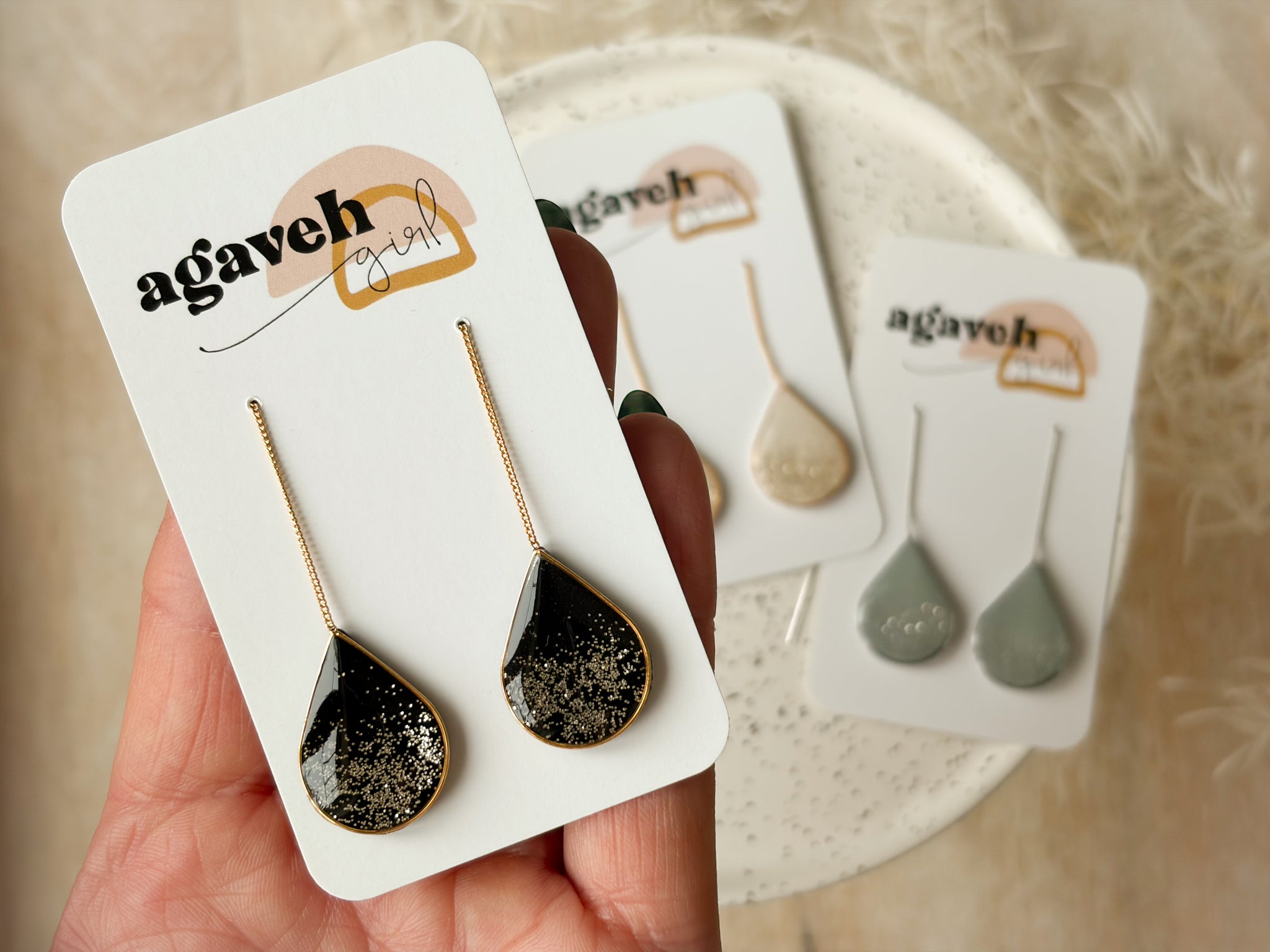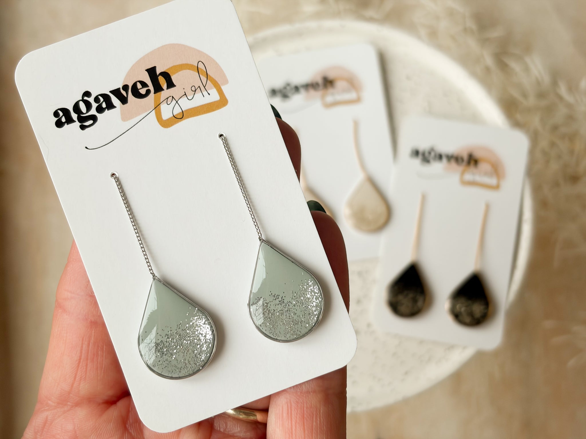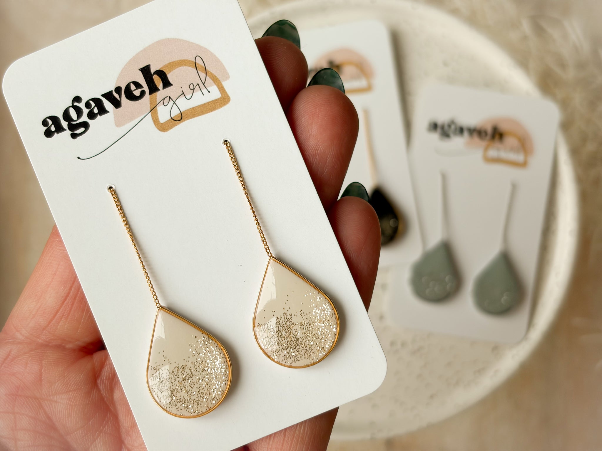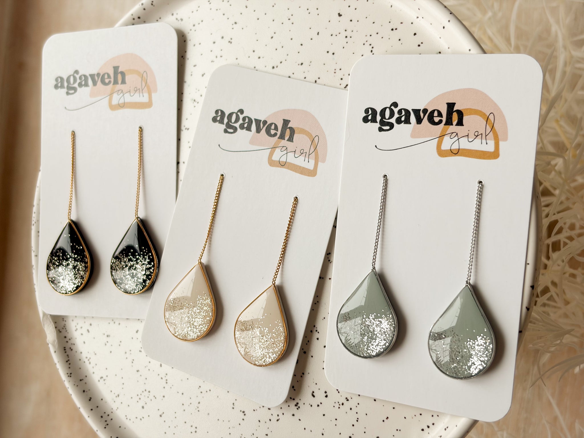 These unique threader earrings glide effortlessly through the ear with a delicate post and chain, allowing you to adjust the length to your perfect fit. Extremely comfortable, sleek, and lightweight, they’re made for all-day wear. Handmade, nickel free, and finished in 14K gold plated. Available in three different sparkly colour options.