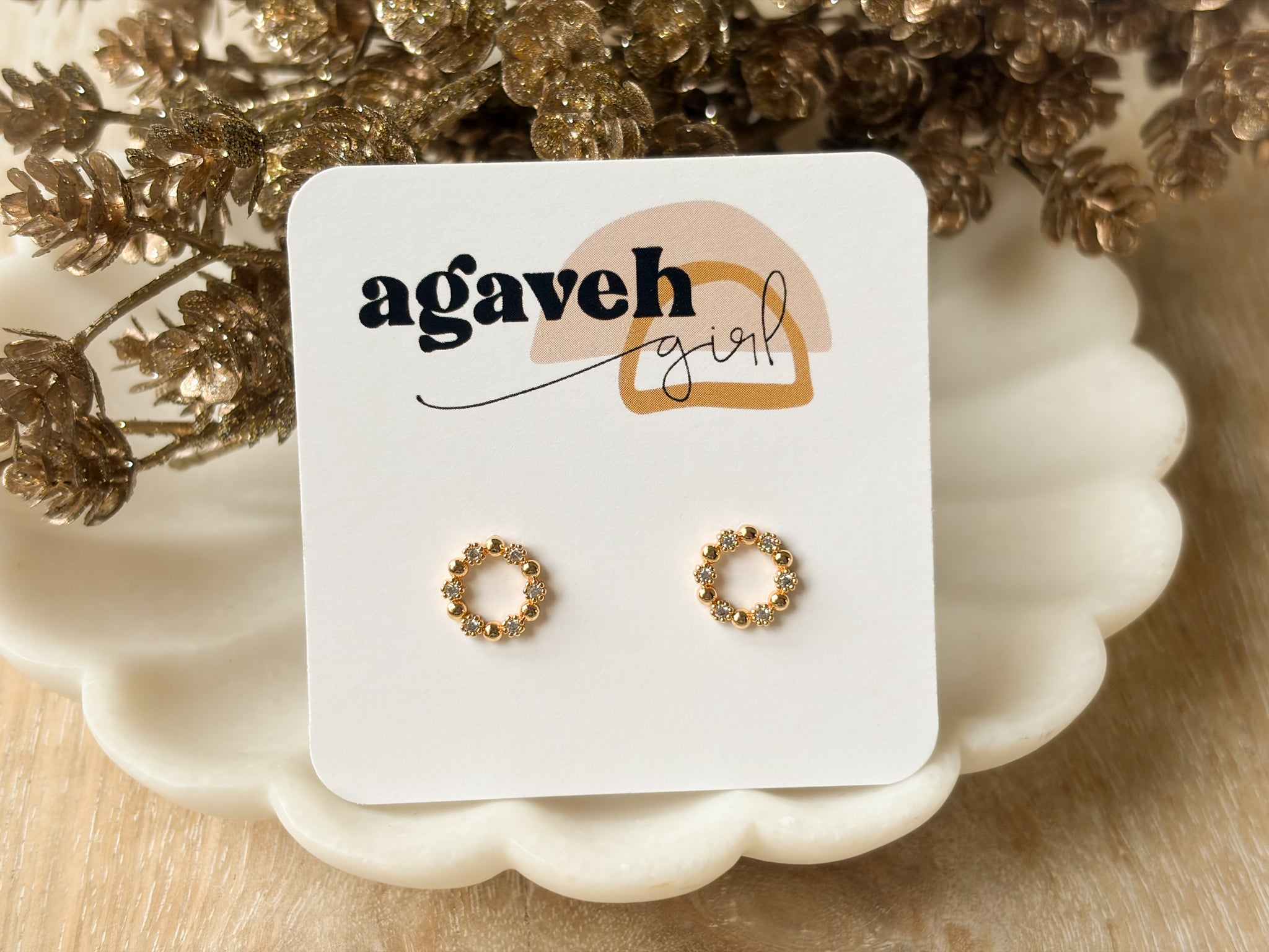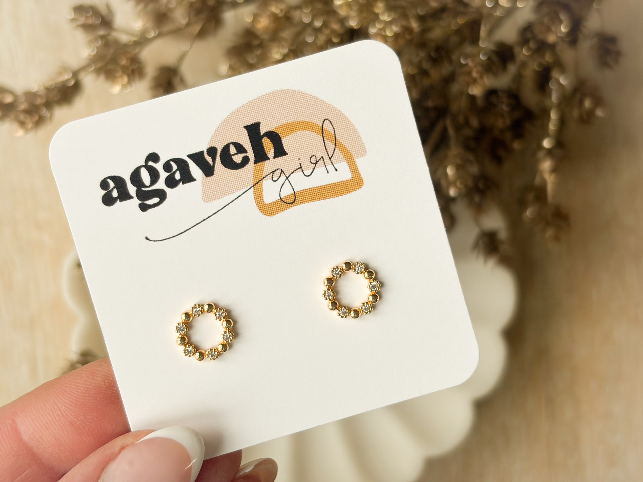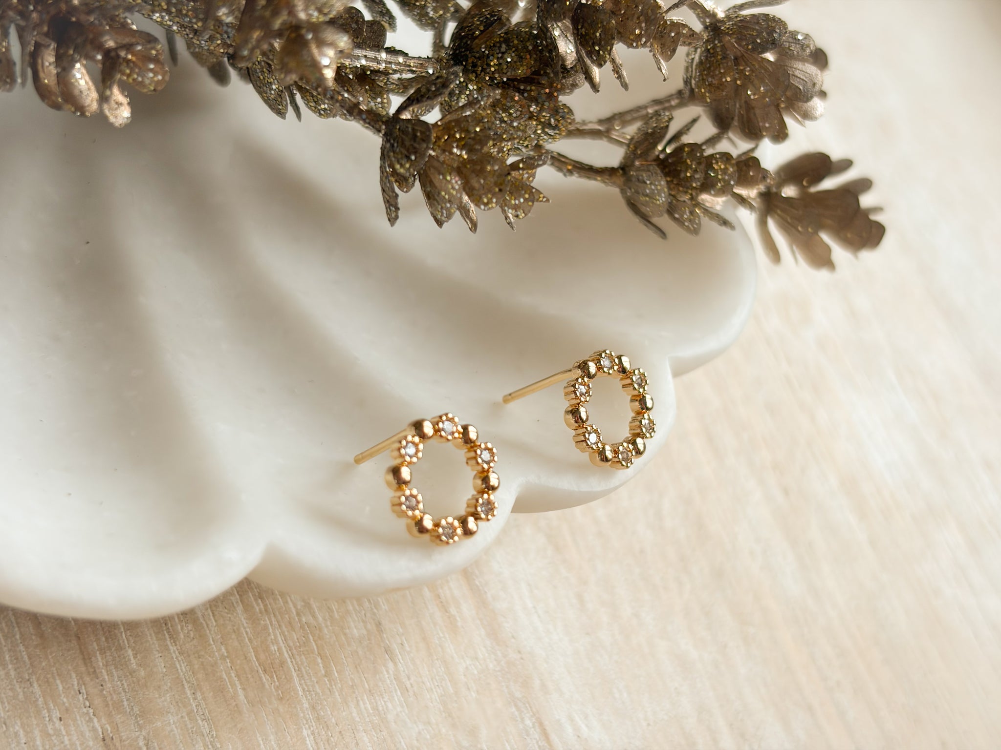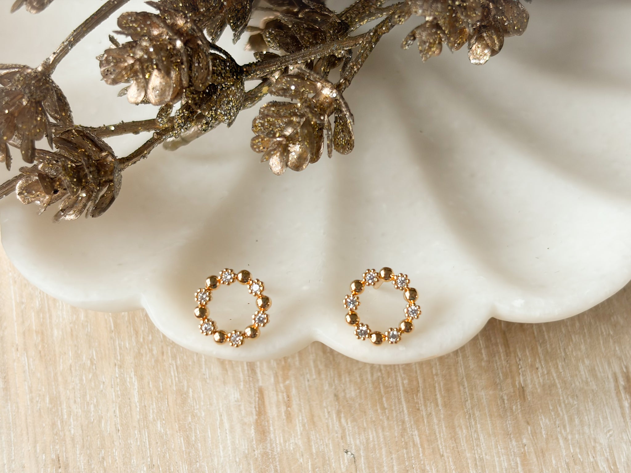 A beautiful, detail-rich stud designed to sparkle from every angle. Measuring 1/2” in diameter and fully adorned with radiant cubic zirconia stones, this earring brings effortless elegance to any look. Finished in 14k gold plating and crafted with nickel-free materials, it’s the perfect blend of comfort, shine, and timeless style.