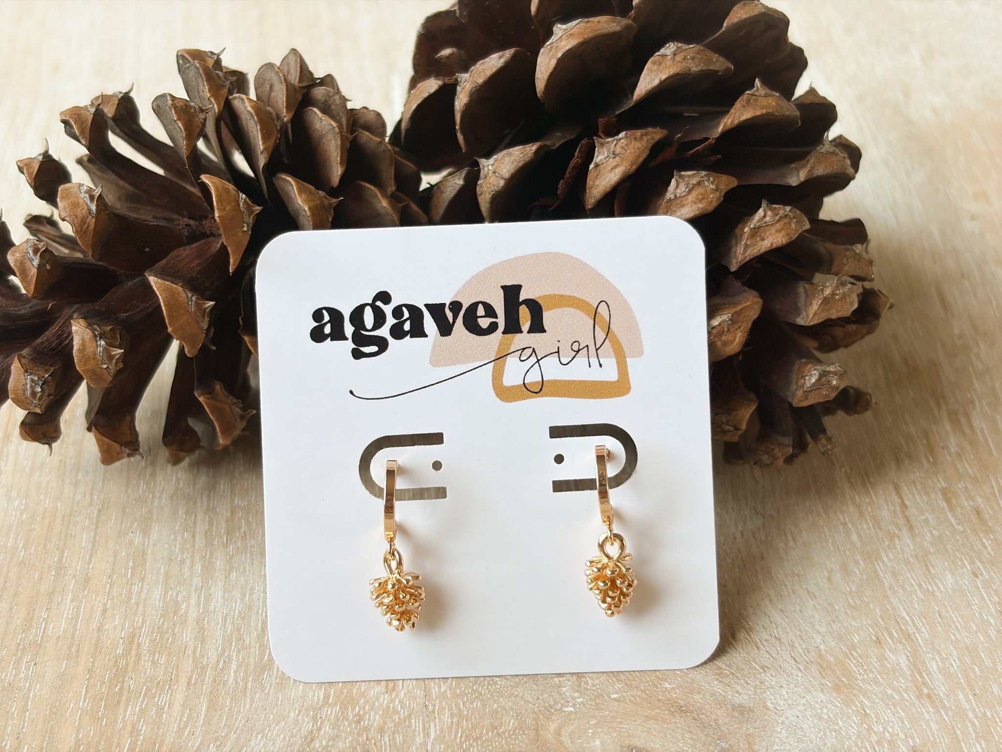 A subtle nod to the season, these charming pine cone hoop earrings bring Christmas warmth without going over the top. Each petite cone is finely detailed and hangs from a sleek 14k gold-plated hoop for an elegant, everyday shine. Lightweight, nickel free, and perfectly festive, they’re the ideal accessory to carry a touch of holiday magic into any outfit.