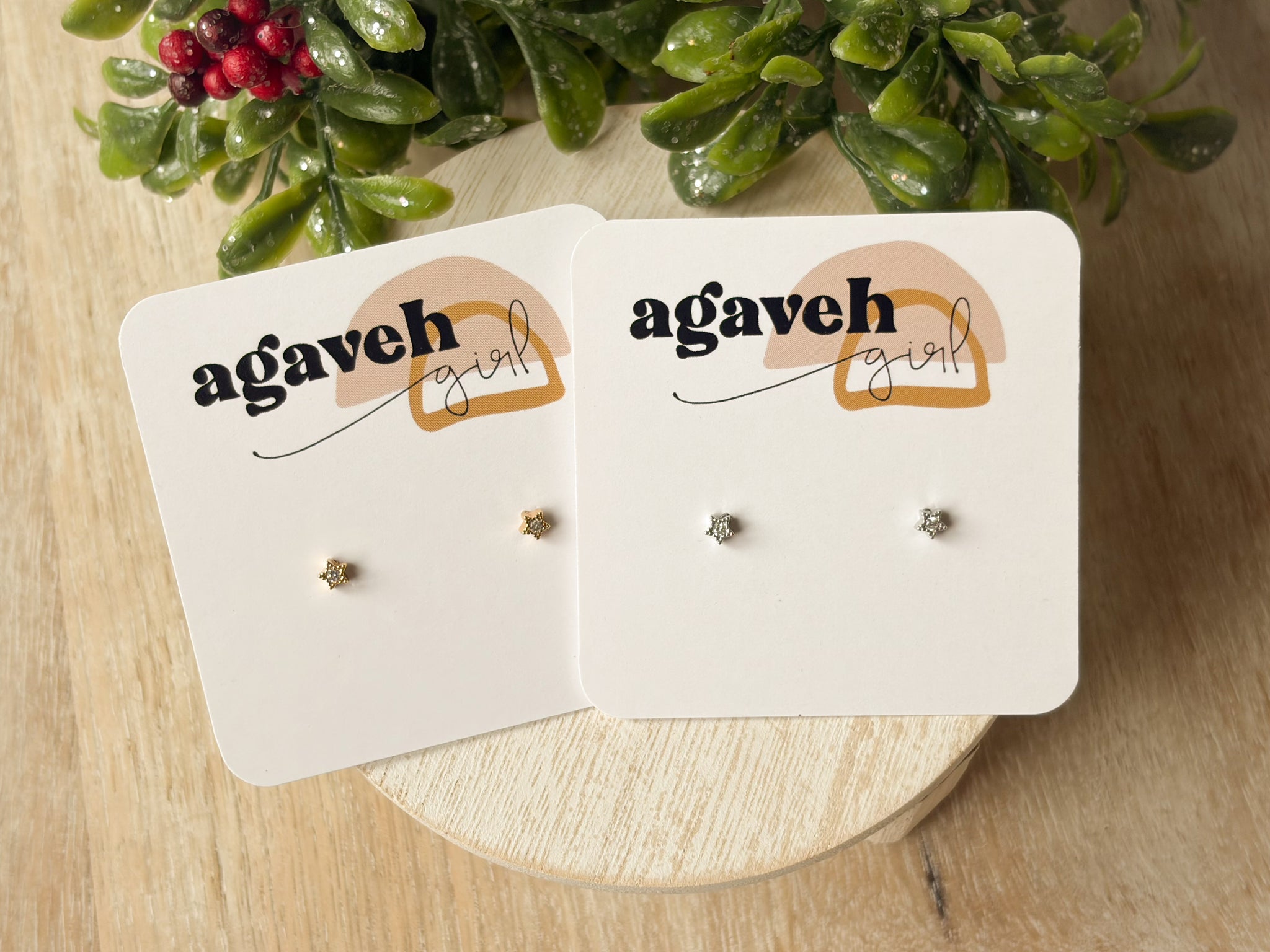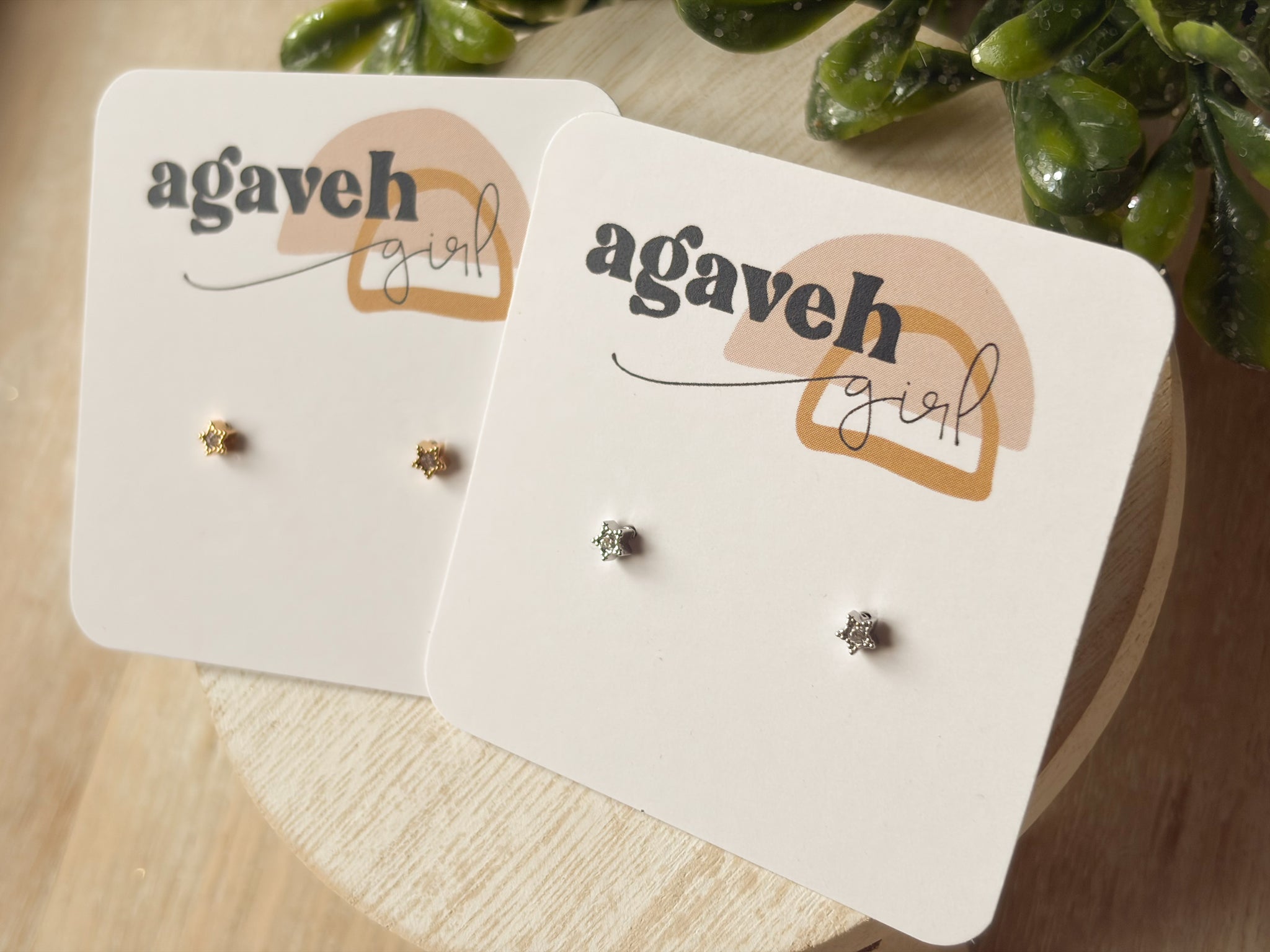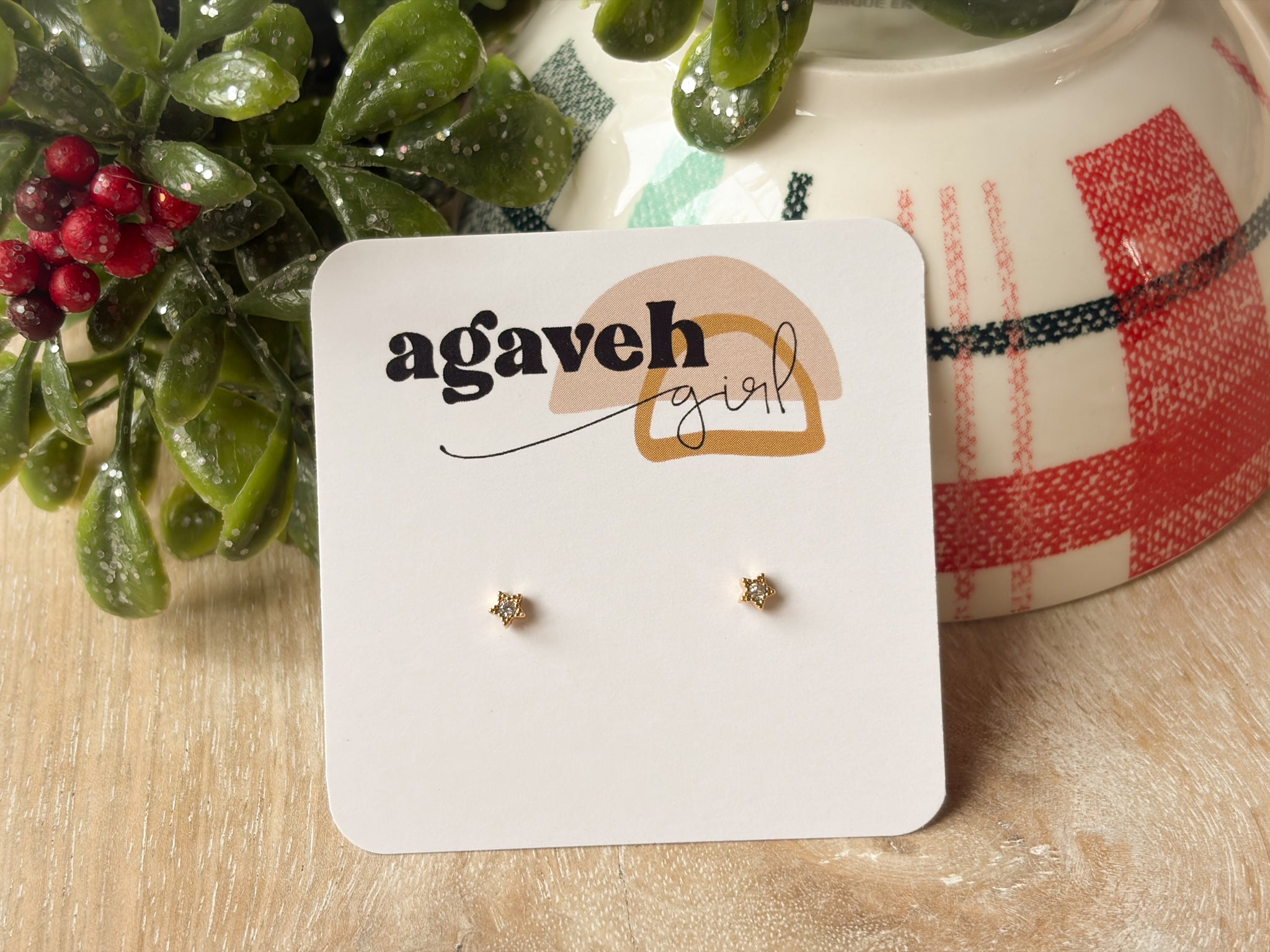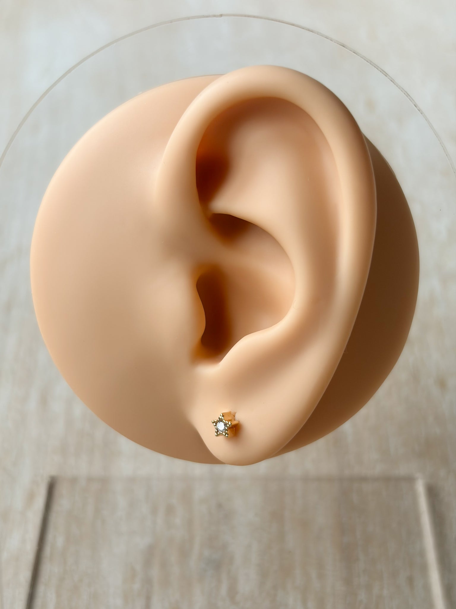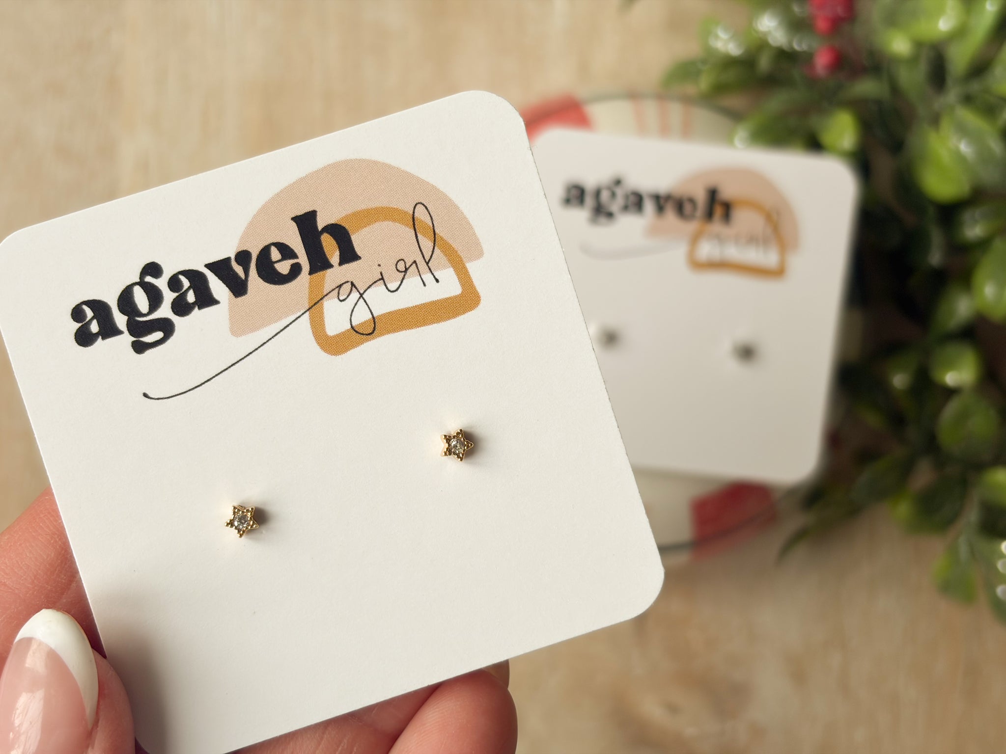 Tiny star studs with a sparkling cubic zirconia center, finished in 14k gold plating and fully nickel free—simple, celestial, and perfect for everyday wear.