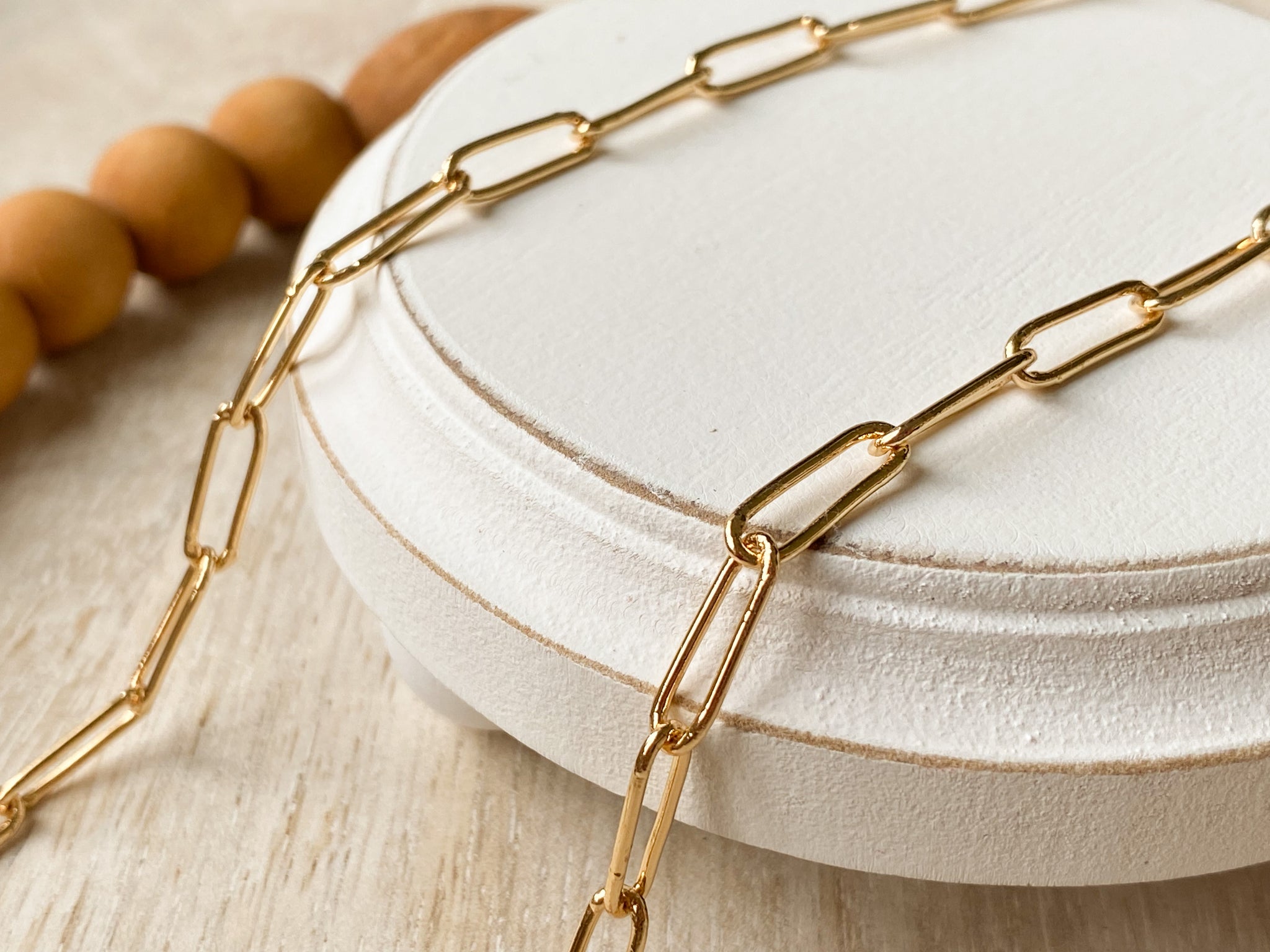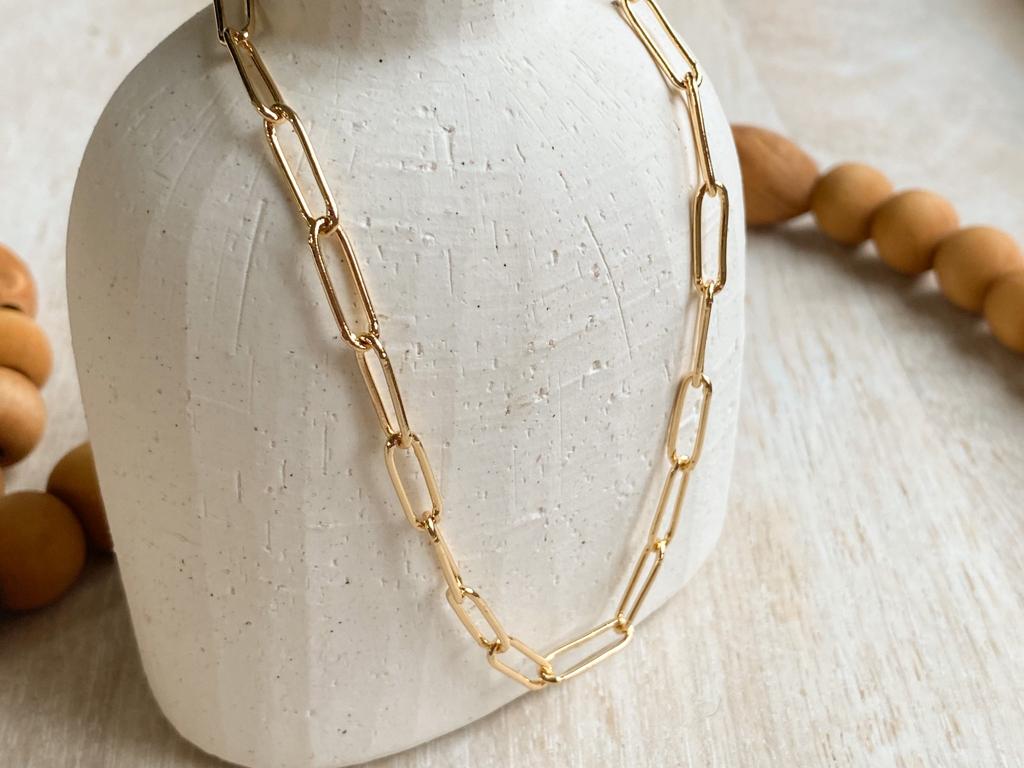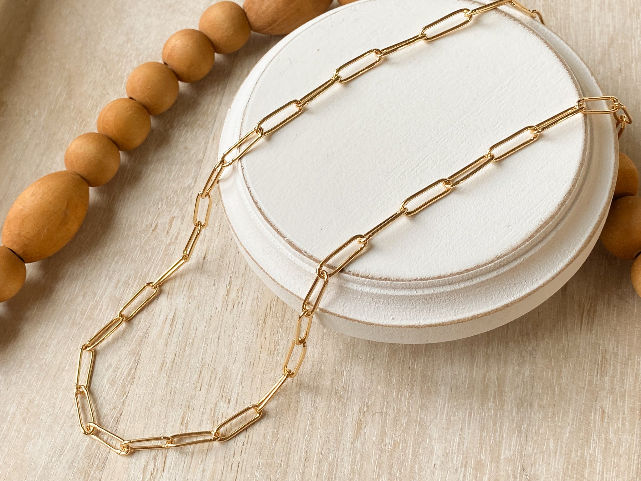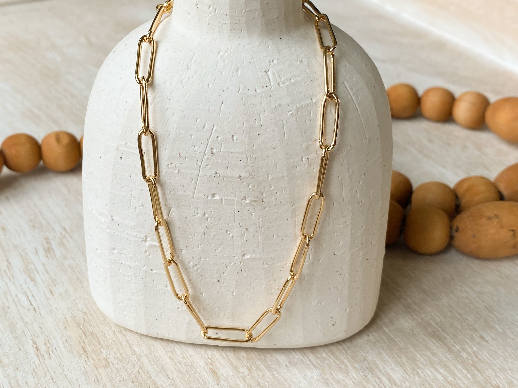 This is the perfect necklace to layer with or to wear alone. This is 18K gold plated and is 18 inches.
